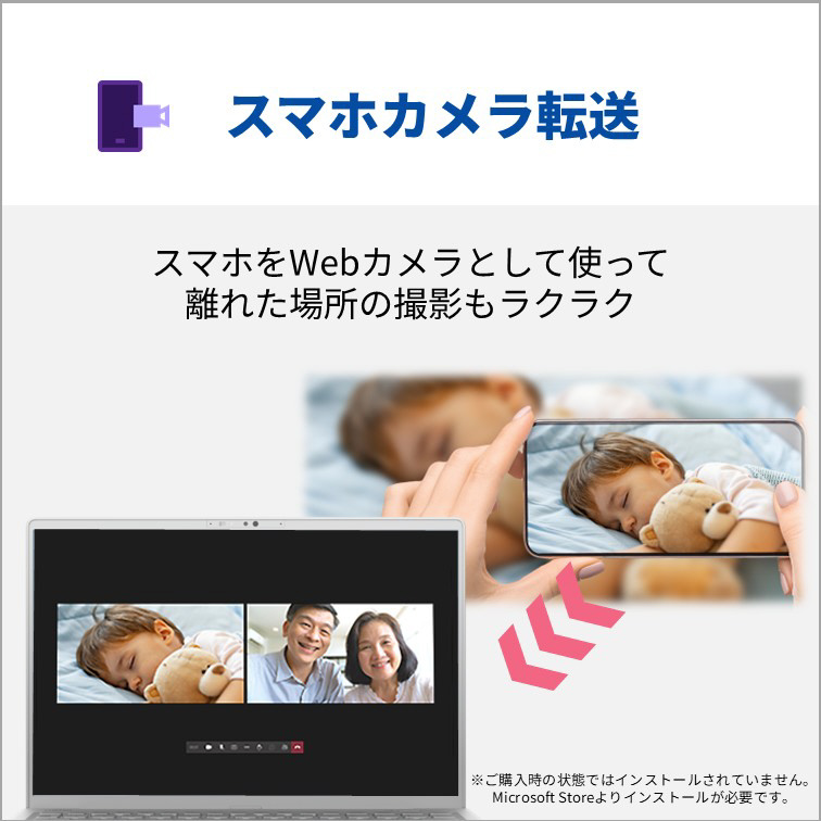 顔補正アプリ「Umore」や「AIノイズキャンセリング」搭載なので、いつでもどこでもオンライン会議が快適です。