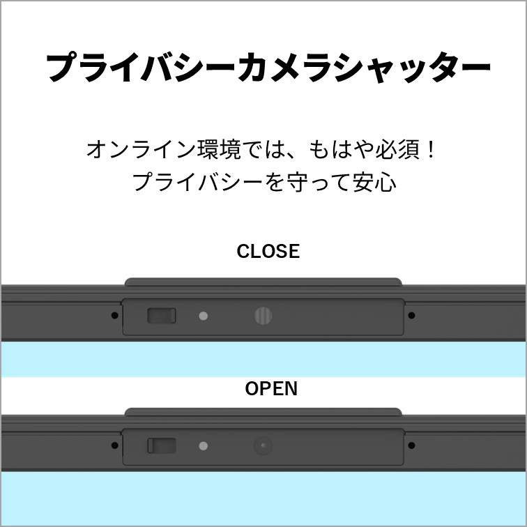 AIの力で自分の声も相手の声も自動で補正してくれる「AIノイズキャンセリング」と顔を補正してくれる「Umore」で、突然のオンライン会議にも余裕で対応。「Quick Capture」を使えば、AIを活用して画面のスクリーンショットを自動で保存してくれるので会議や授業に集中できます。カメラを使用しない時は物理的にシャッターを閉じることで、プライバシーを守ることができます。