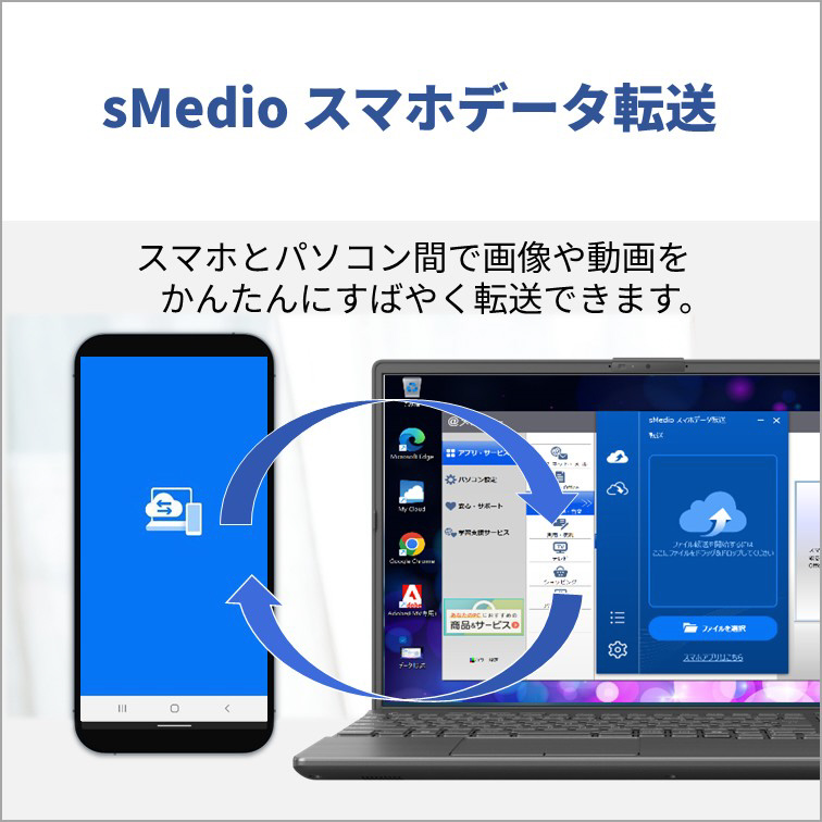 スタイリッシュなボディに、光学ドライブを搭載しました。お気に入りの動画など、多彩なコンテンツをいつでも好きなときに楽しめます。