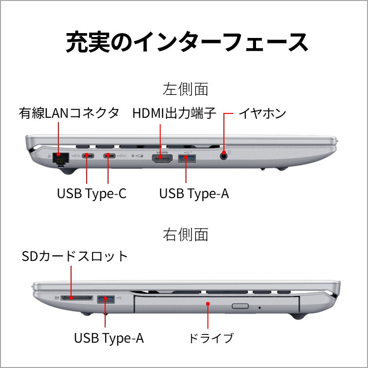 スタイリッシュなボディに、光学ドライブを搭載しました。お気に入りの動画など、多彩なコンテンツをいつでも好きなときに楽しめます。
