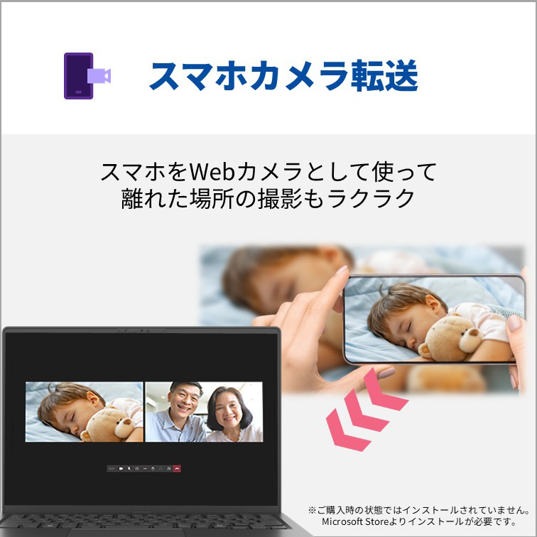 顔補正アプリ「Umore」や「AIノイズキャンセリング」搭載なので、いつでもどこでもオンライン会議が快適です。