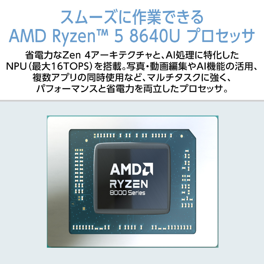 ■スムーズに作業できるAMD Ryzen(TM) 5 8640U プロセッサ