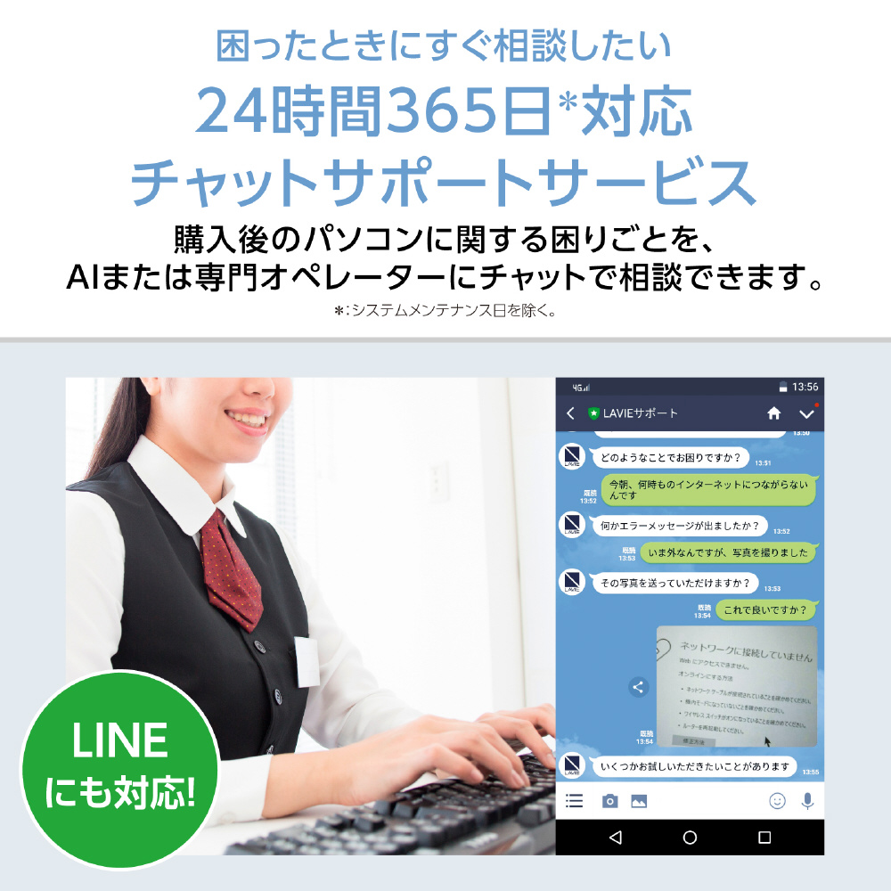購入後のパソコンに関する困りごとを、AIまたは専門オペレーターにチャットで相談できます。