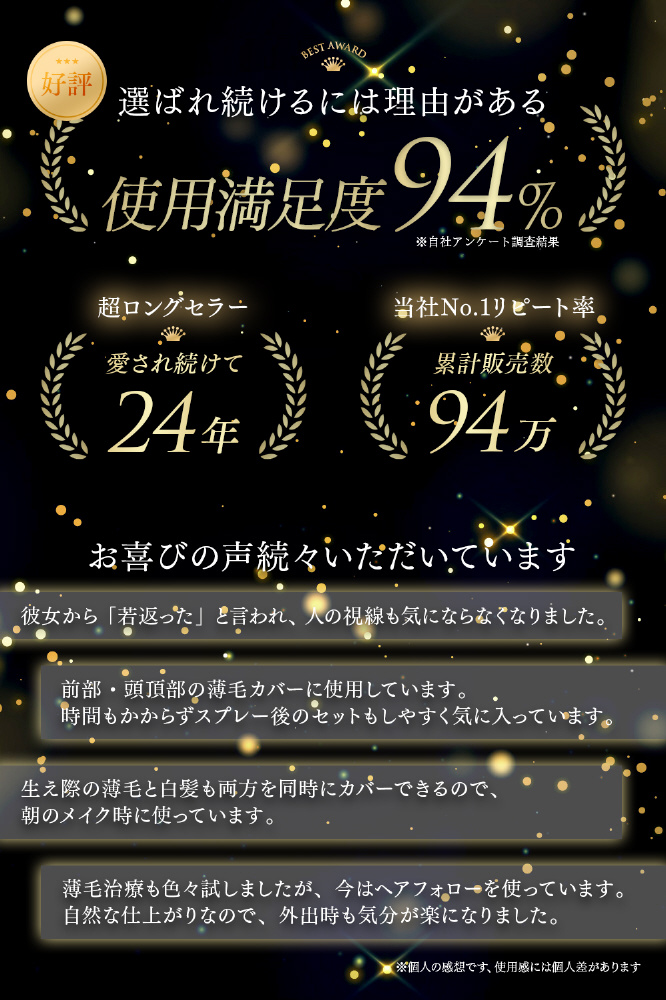 薄毛部分や細くなった髪の毛を自然にをカバーしてくれる、スプレー式ボリュームアップスプレー。