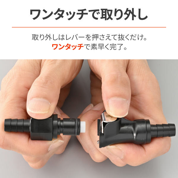 フューエルホースに中継させるだけで、ワンタッチで脱着可能。