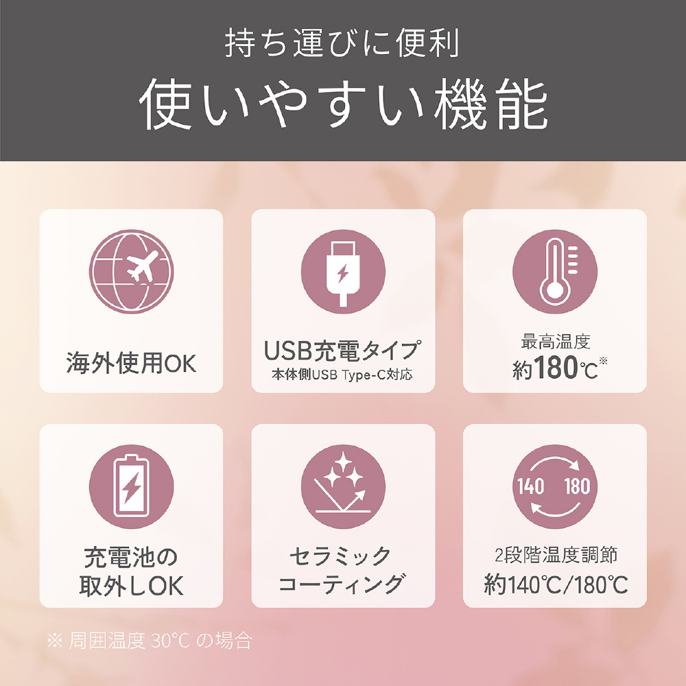 海外使用OK!2段階温度調整(約140℃/180℃)