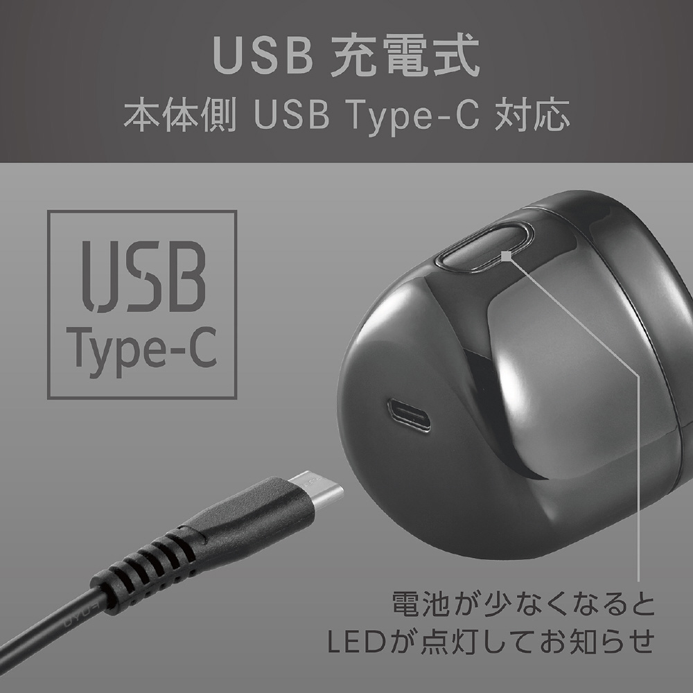 持ち運びの際に電源ボタン長押しでロックできる機能搭載 電池残量が少なくなるとLEDランプが点灯するお知らせ機能搭載 マグネット式のキャップで収納や持ち運びをスマートに USBケーブル付属(本体側USB Type-C対応) 携帯や収納に便利な専用キャップとケース、お手入れに便利な掃除用ブラシ付き