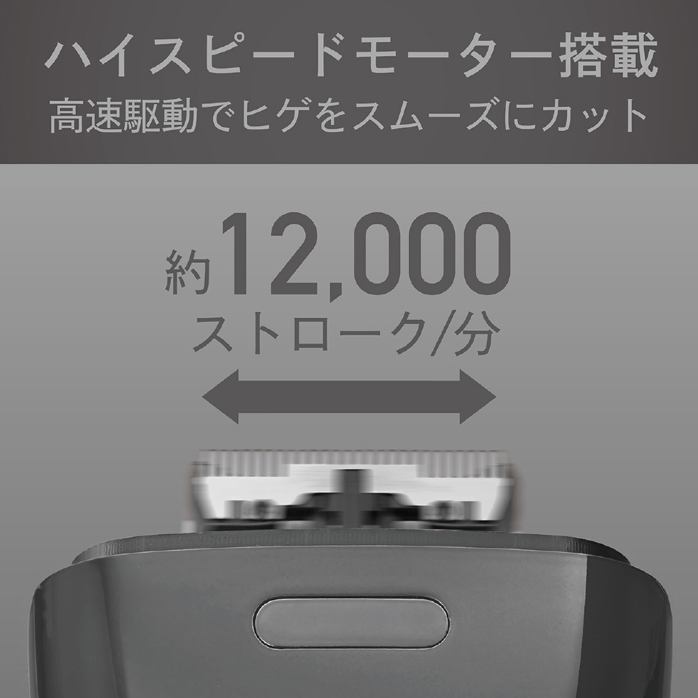 ハイスピードモーター搭載で約12,000ストローク/分の高速駆動でヒゲをスムーズにカット