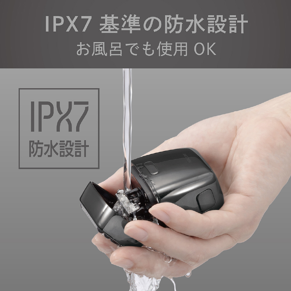 研ぎ澄まされたシームレスデザインのコンパクトシェーバー ハイスピードモーター搭載、往復式5枚刃 IPX7基準の防水設計、お風呂で使用OK 充電しながらでも使用いただけるUSB充電式タイプ