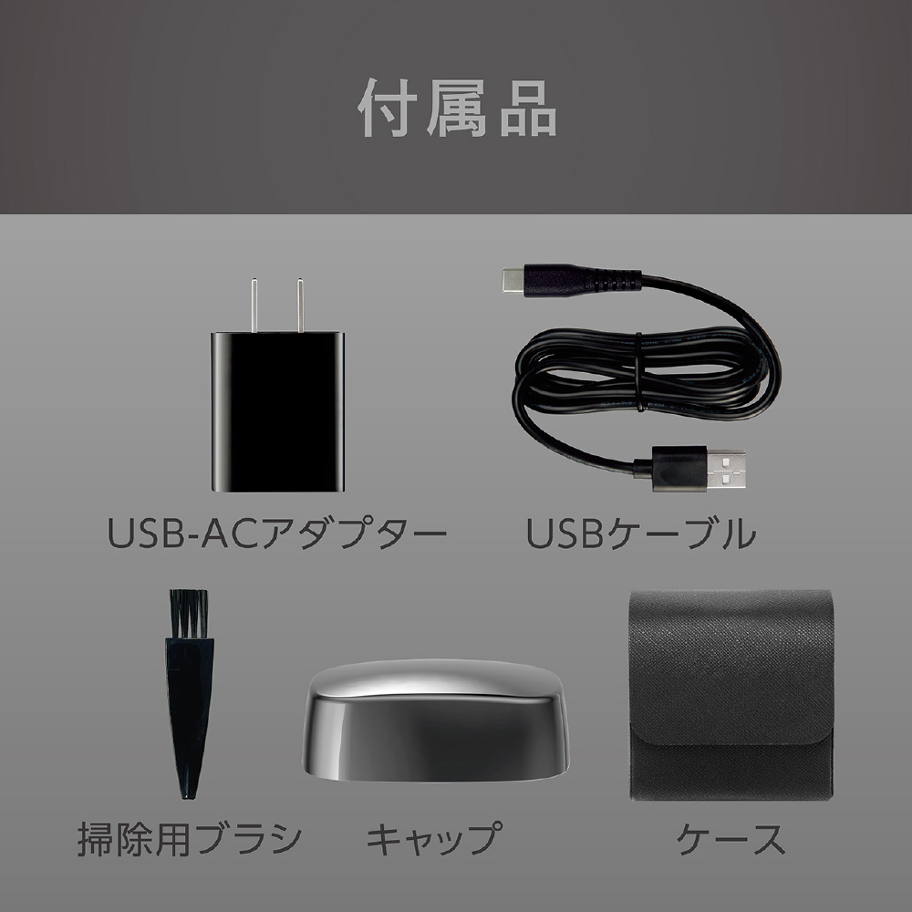 付属品 USB-ACアダプタ―、USBケーブル、キャップ、掃除用ブラシ、ケース