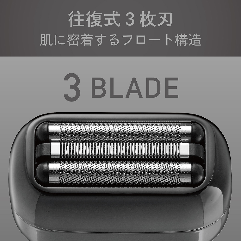 肌にしっかり密着するフロート構造の往復式3枚刃