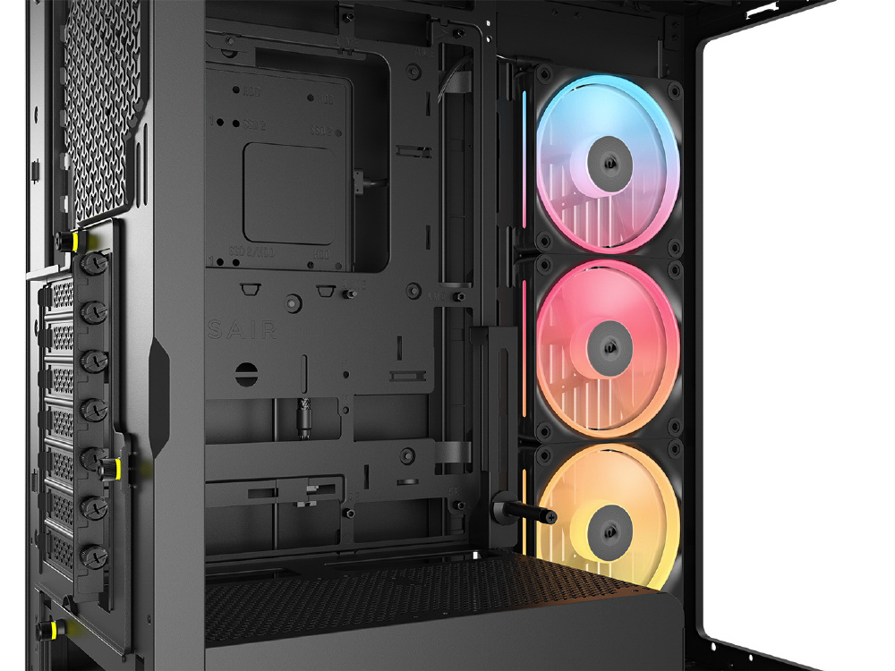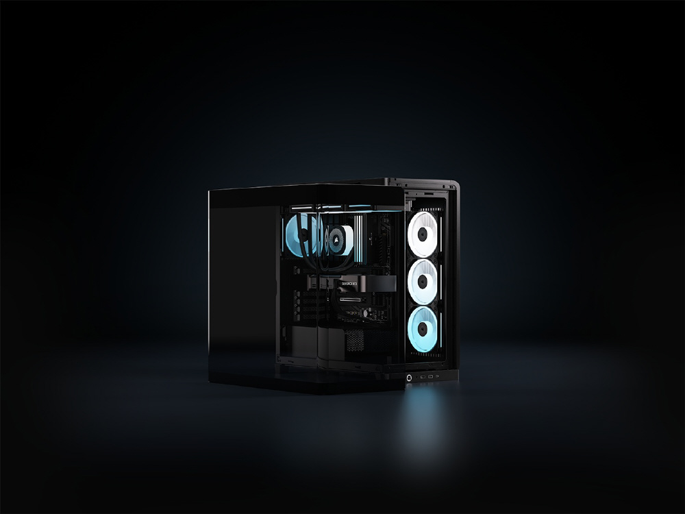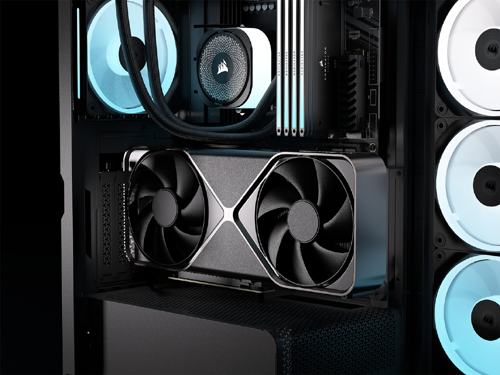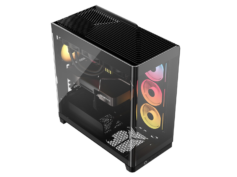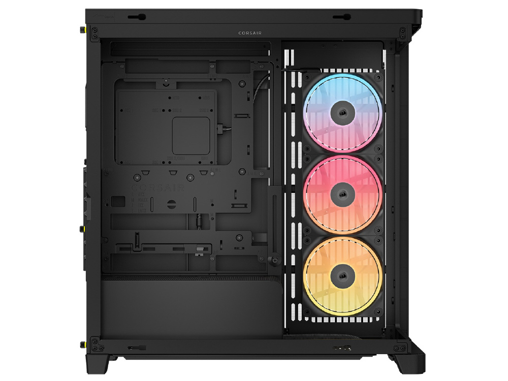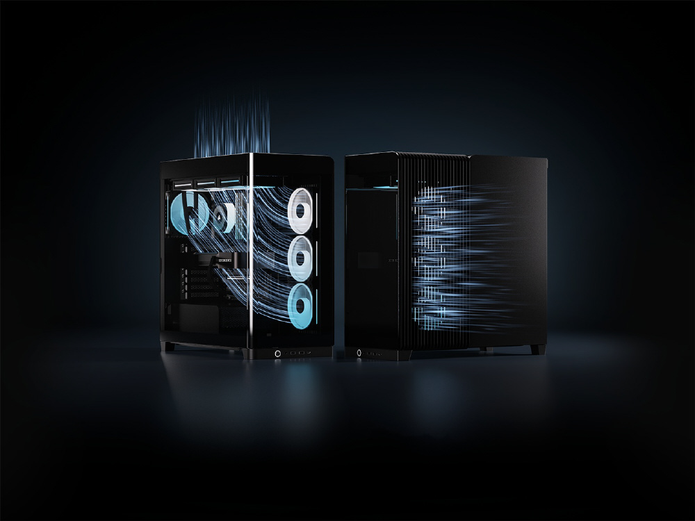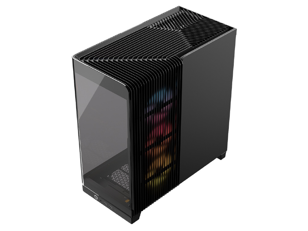 曲面強化ガラスパネルとInfiniRailシステムを採用。リバースローター設計のiCUE LINKファンを備えるミドルタワー型PCケース