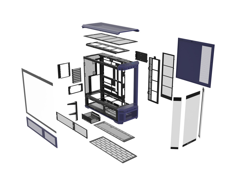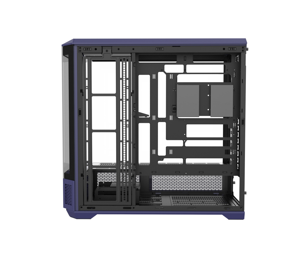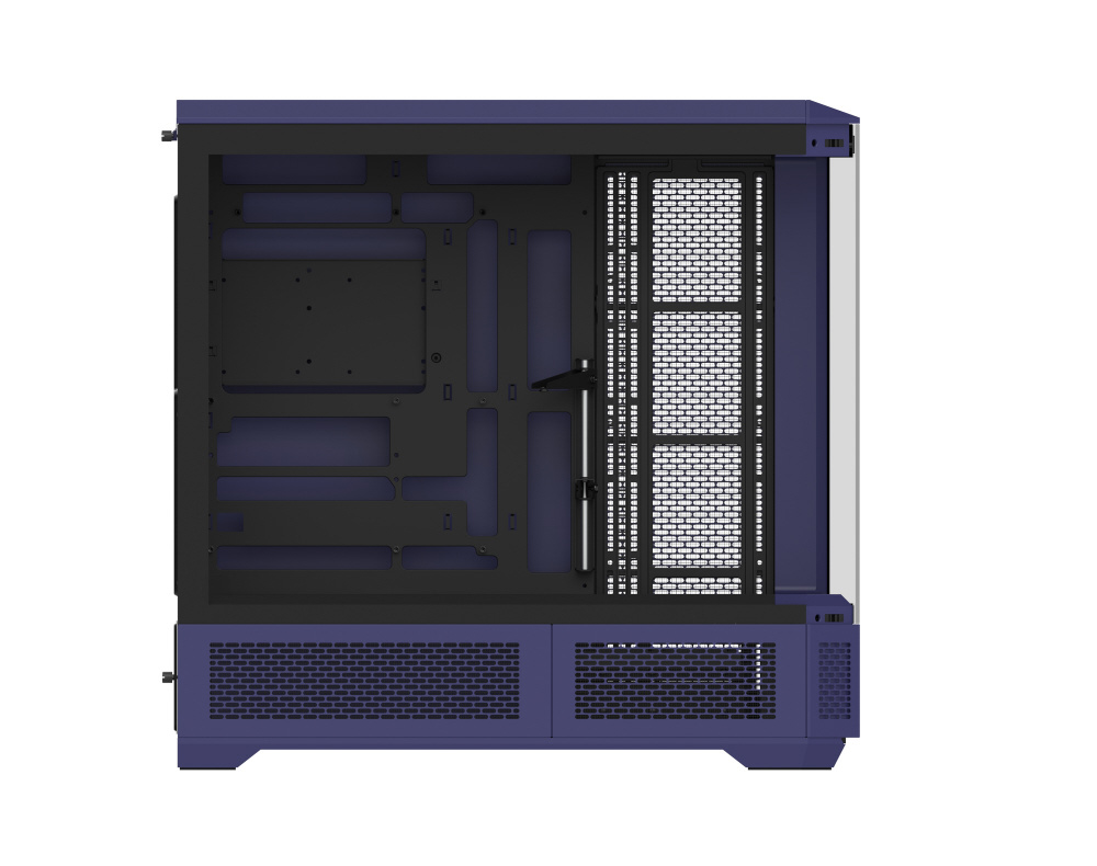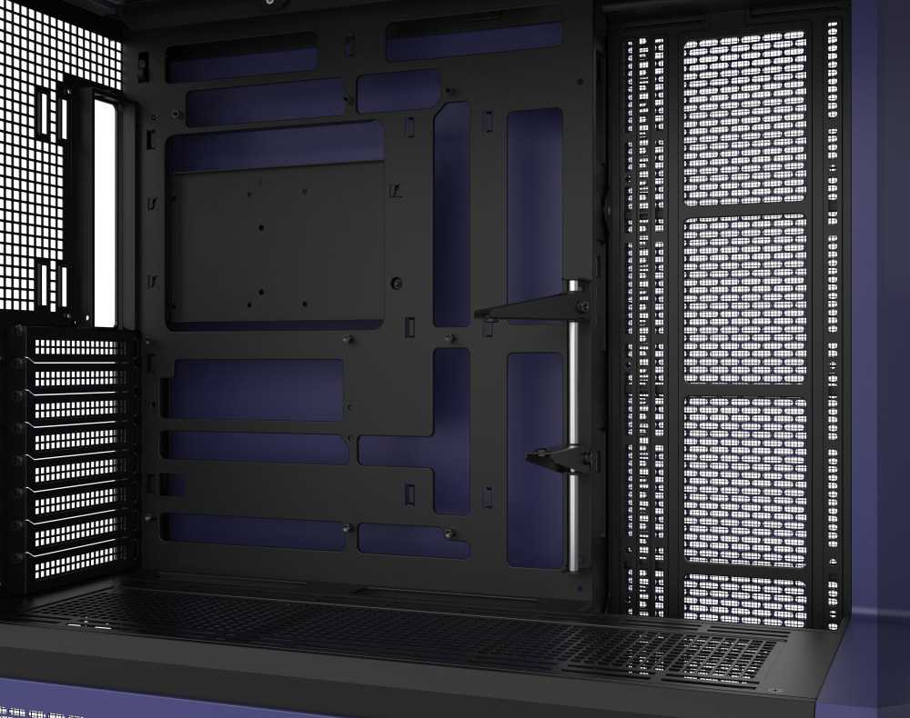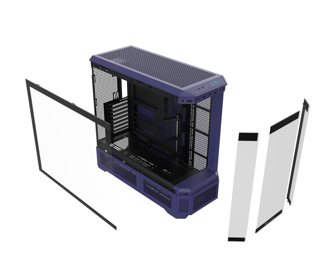 4枚の強化ガラスパネルを採用したピラーレスデザイン。背面コネクタ設計のマザーボードに対応したフルタワー型PCケース