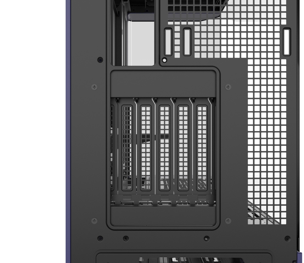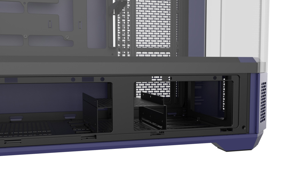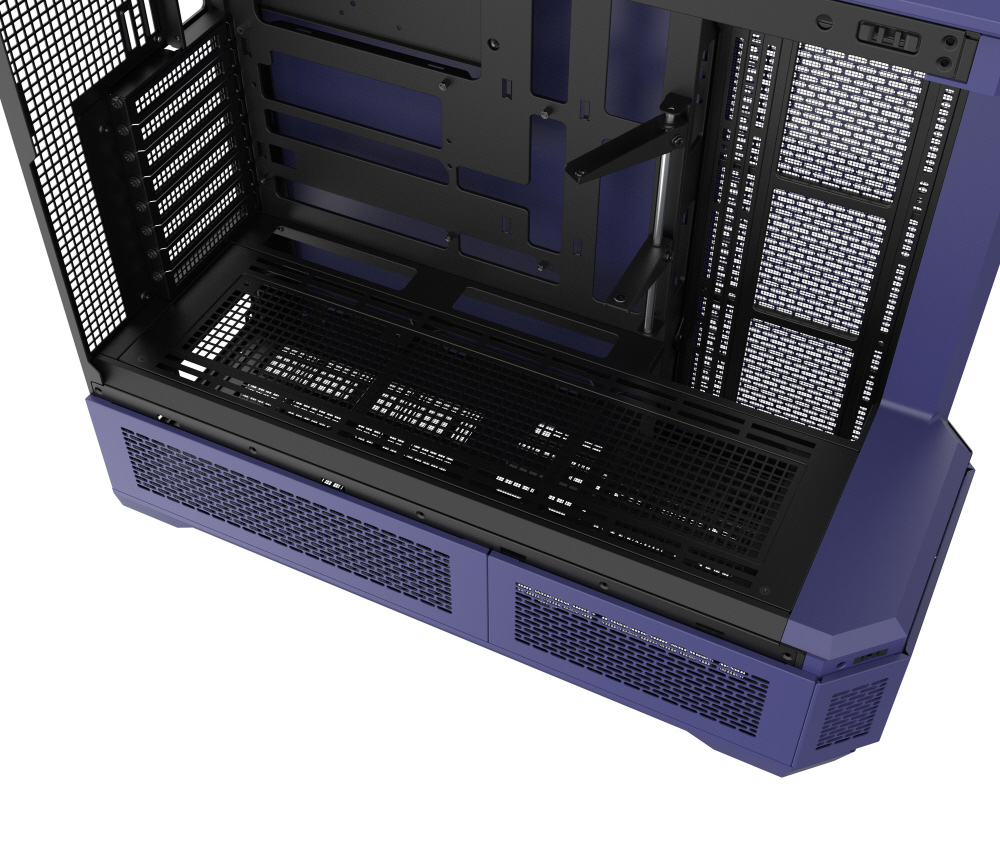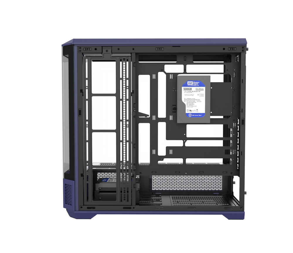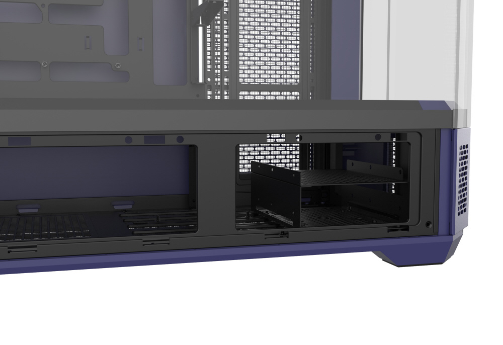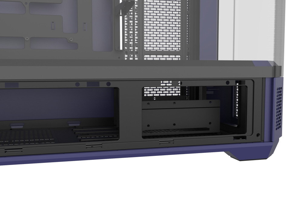4枚の強化ガラスパネルを採用したピラーレスデザイン。背面コネクタ設計のマザーボードに対応したフルタワー型PCケース