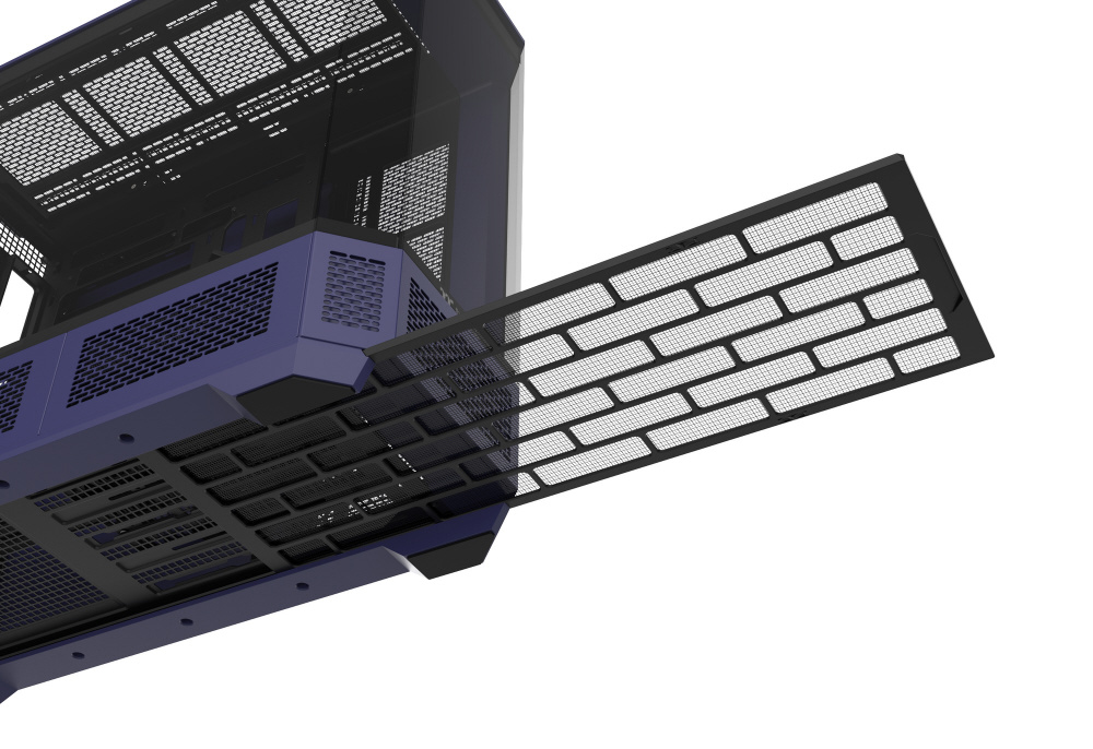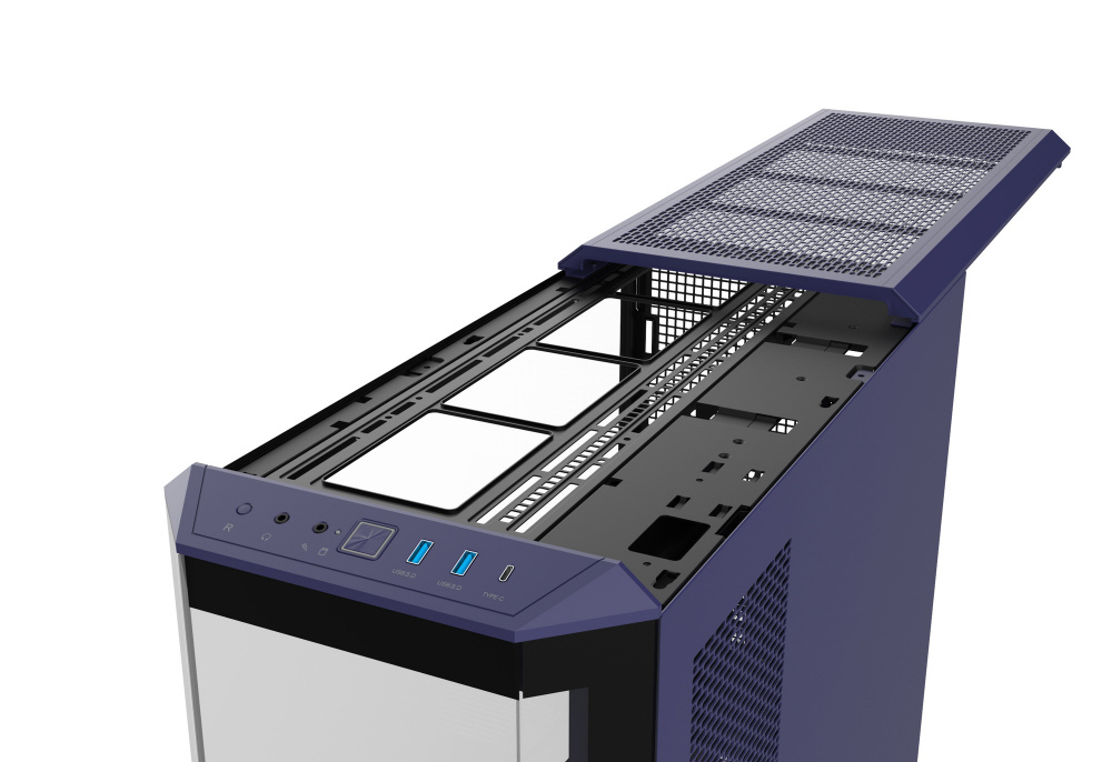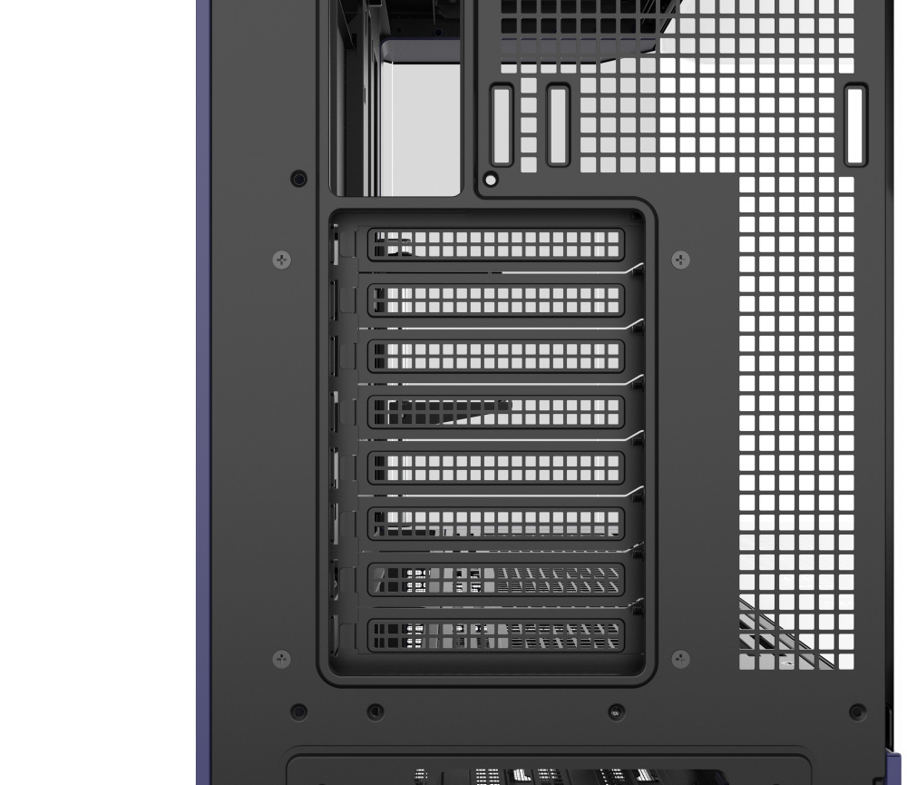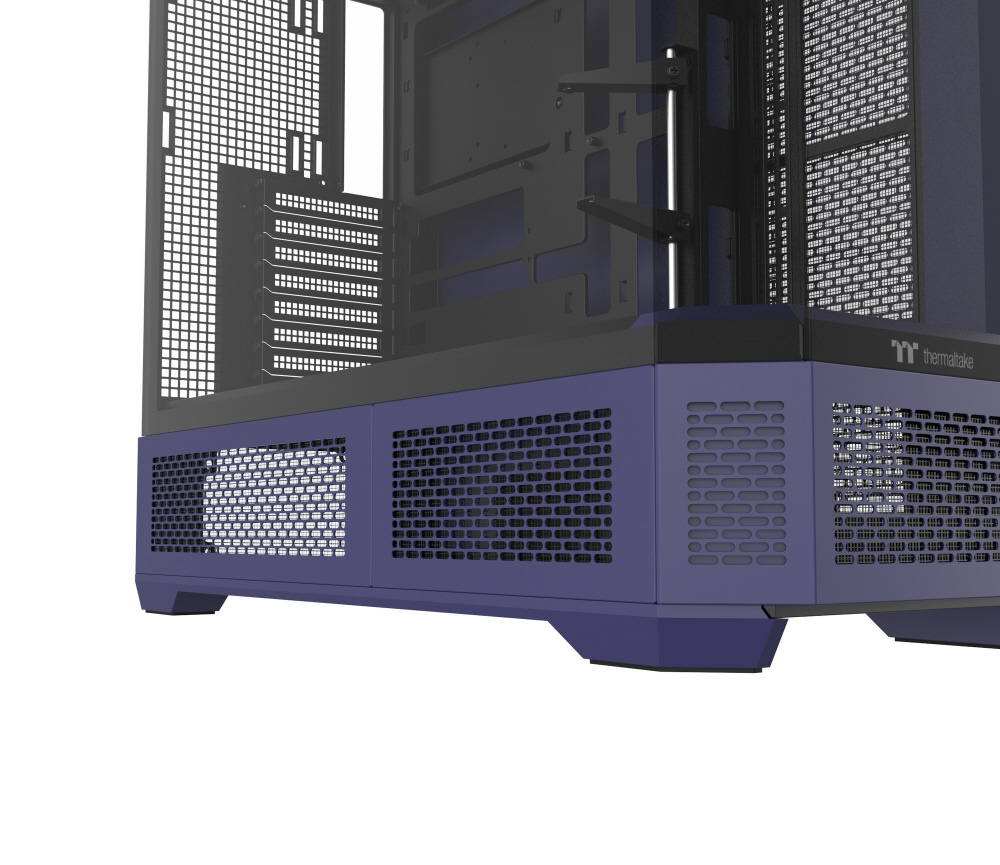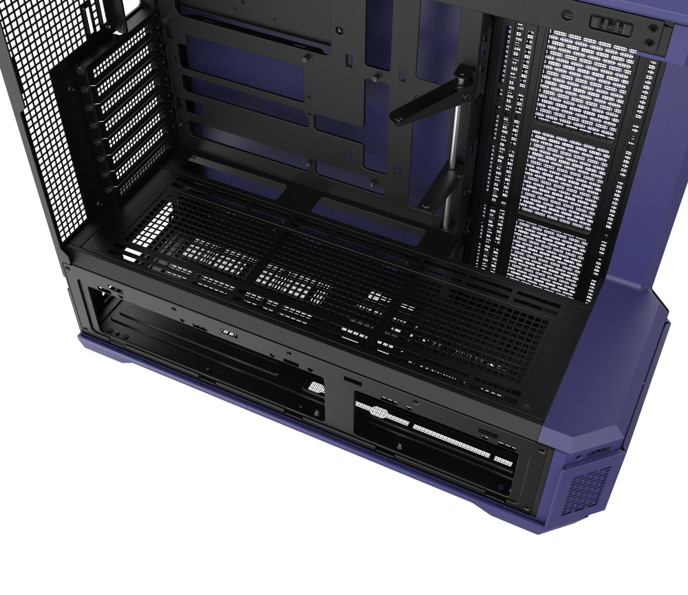 4枚の強化ガラスパネルを採用したピラーレスデザイン。背面コネクタ設計のマザーボードに対応したフルタワー型PCケース