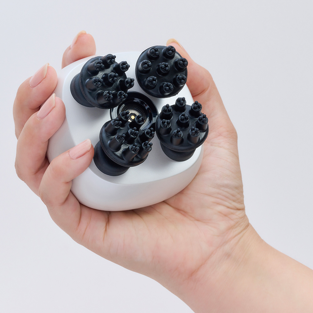 硬くなった頭皮を、「低速」「高速」「ストレッチ」の3つのモードと赤色LEDで、柔らかな地肌へ導きます。