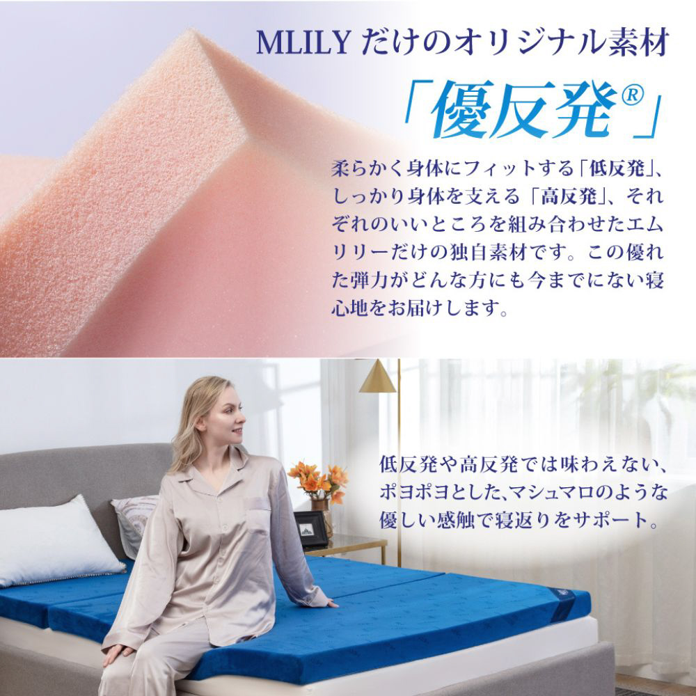 エムリリ―独自の新素材「優反発」。低反発のやわらかさと高反発の支えを融合した新感覚マットレス