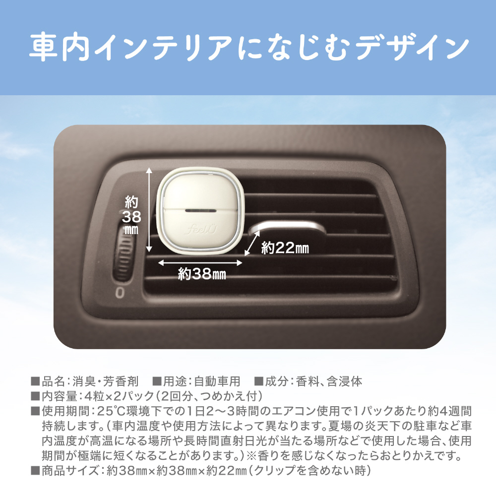 消臭力 クルマ用 feelU(フィールユー) クリップタイプ つめかえ エクリュサボン 2回分 [車用 消臭剤 芳香剤]