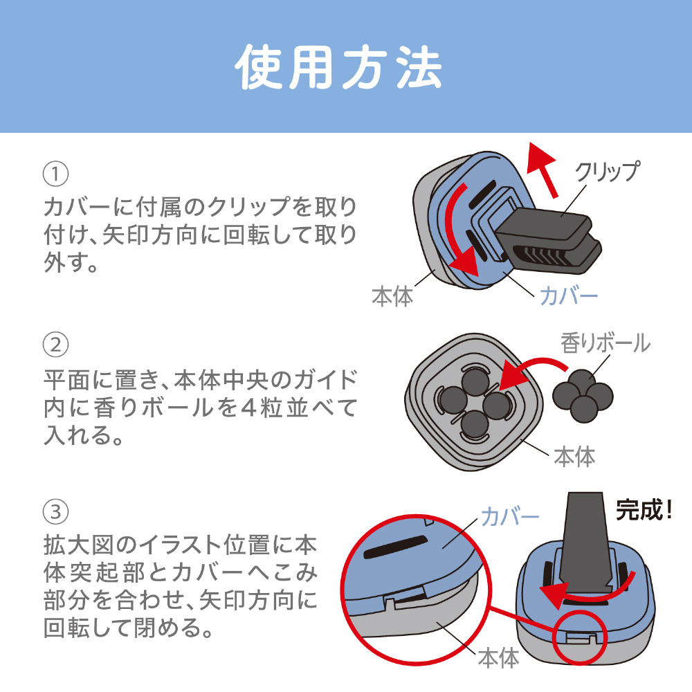※使用後は地域の規則に従って廃棄する。(※香りボールは不燃物として処理できます。)
