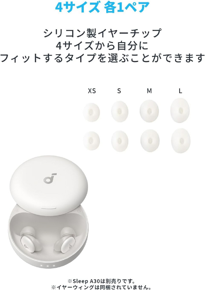 専用イヤーチップ XS/S/M/L 各1ペア Soundcore Sleep A30 オフホワイト D1301Z21-94