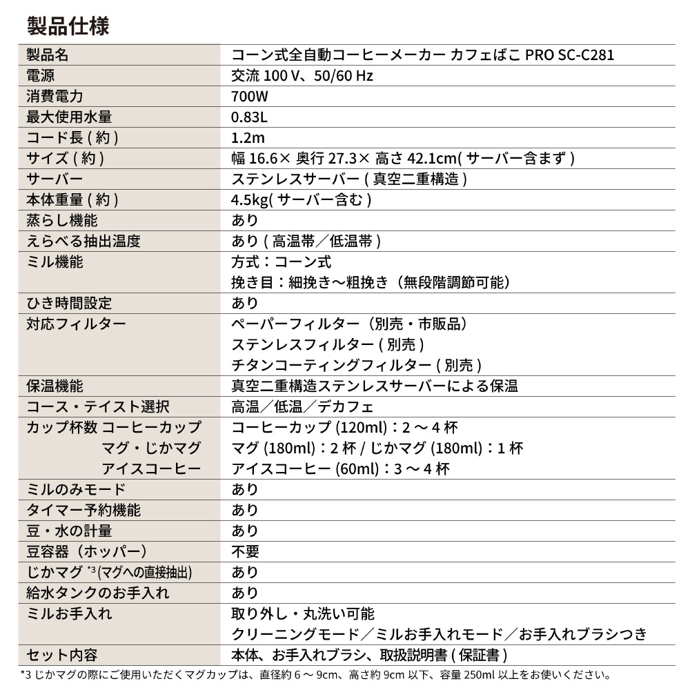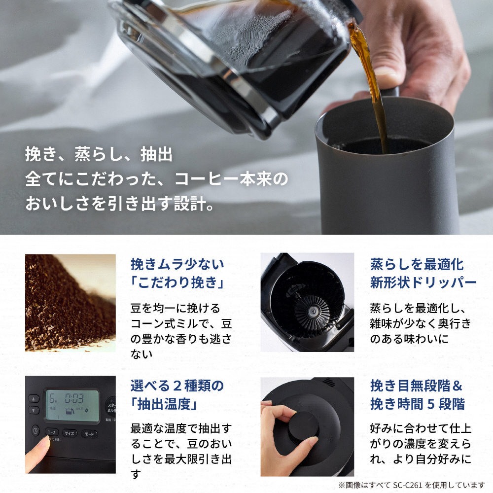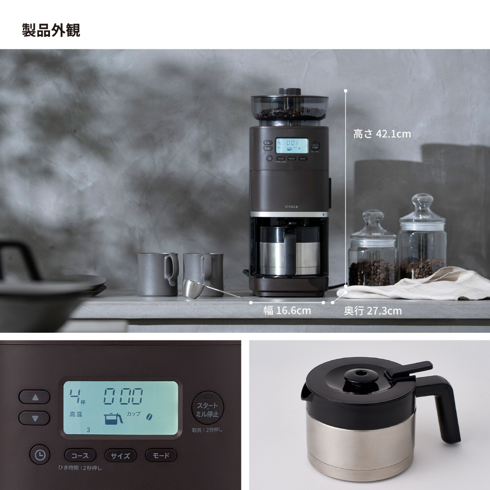 コーン式全自動コーヒーメーカー カフェばこ PRO siroca ダークブラウン SC-C281TD [全自動 /ミル付き]