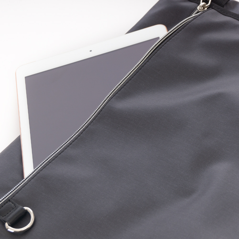 ファスナー付でB4サイズが入る大容量サイズです。中にポケット×2を付属しています。