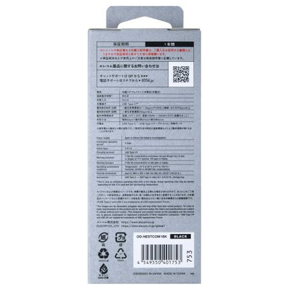■定格入力:5V/1A■充電端子:USB Type-C