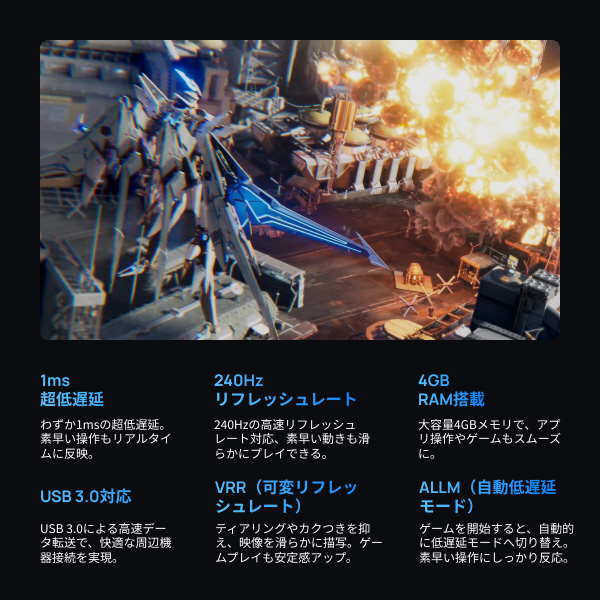 鮮やかな200インチの大画面で圧倒的なゲーム体験を。入力遅延1ms、1080Pで240Hzの滑らかさを実現。PS5、Xbox、Switch、クラウドプラットフォームにも瞬時に接続可能で、いつでもどこでも妥協のない没入型ゲームプレイを楽しめます。