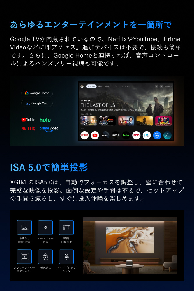 現時点で最も先進的な自社開発レンズを搭載しています。XGIMI X-Master レッドリングレンズは高解像度A級レンズモジュールに、宇宙工学レベルで使用されるレーザーガラスを組み合わせることで、比類のない明瞭さ、卓越した光透過率、そして長期にわたり安定したパフォーマンスを実現します。