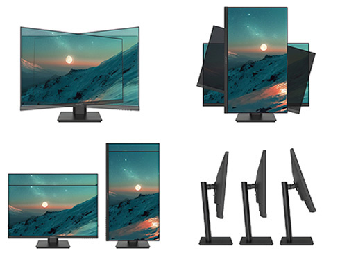 ■高さ調整が可能な昇降式多機能スタンドを搭載、最大135mmの範囲(横置時)で最適な高さに画面を調整可能です。また、縦画面として使用出来るピボット(回転)機能にも対応します。スイーベル(首振り)機能は、左右各30°の範囲で動かせます。