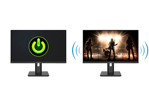 ■あらゆる角度から見ても色やコントラストの変化がおきにくいIPSパネルを搭載し、広視野角上下左右178°を実現します。最大輝度300cd/m2の液晶パネルは、sRGB:99%の広色域に対応し、動画や写真も色鮮やかに美しく表示します。