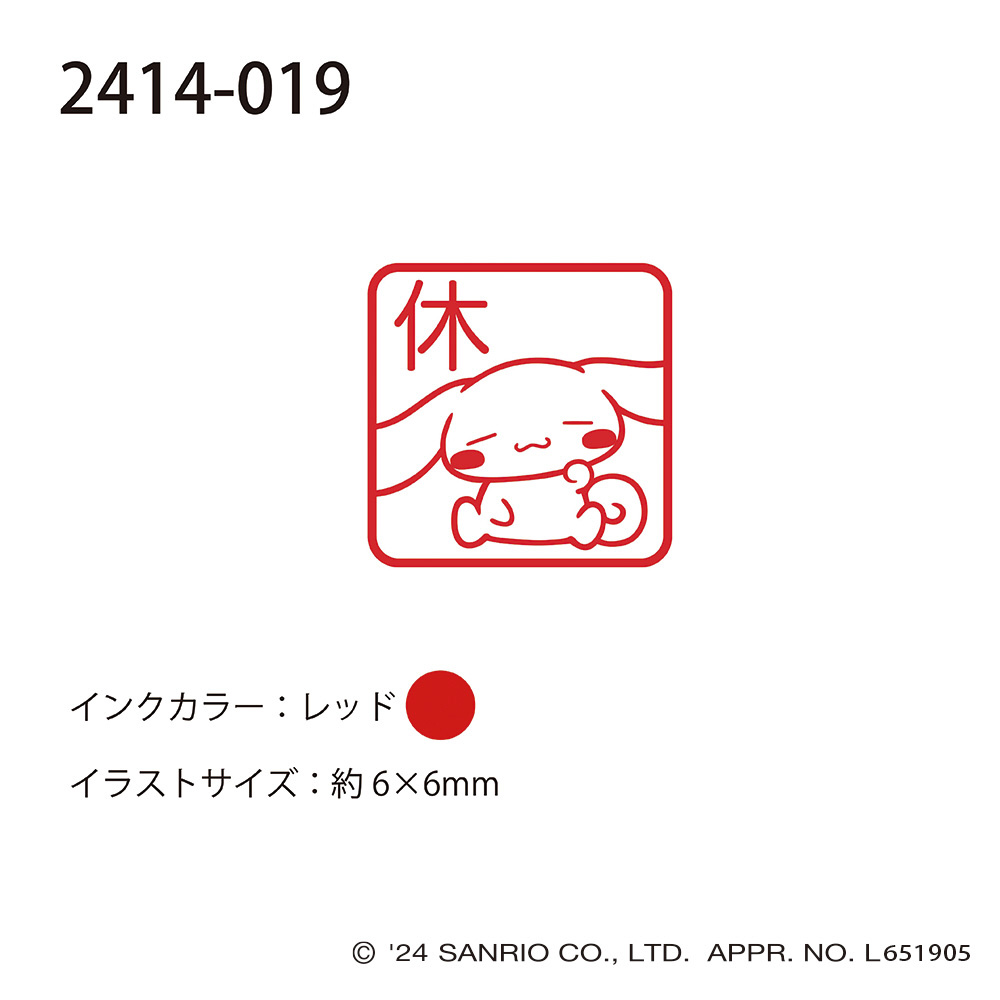 サンリオキャラクターズワンポイント浸透印 シナモロール 休 2414-019
