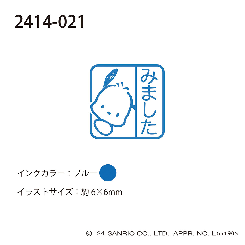 サンリオキャラクターズワンポイント浸透印 ポチャッコ  みました 2414-021