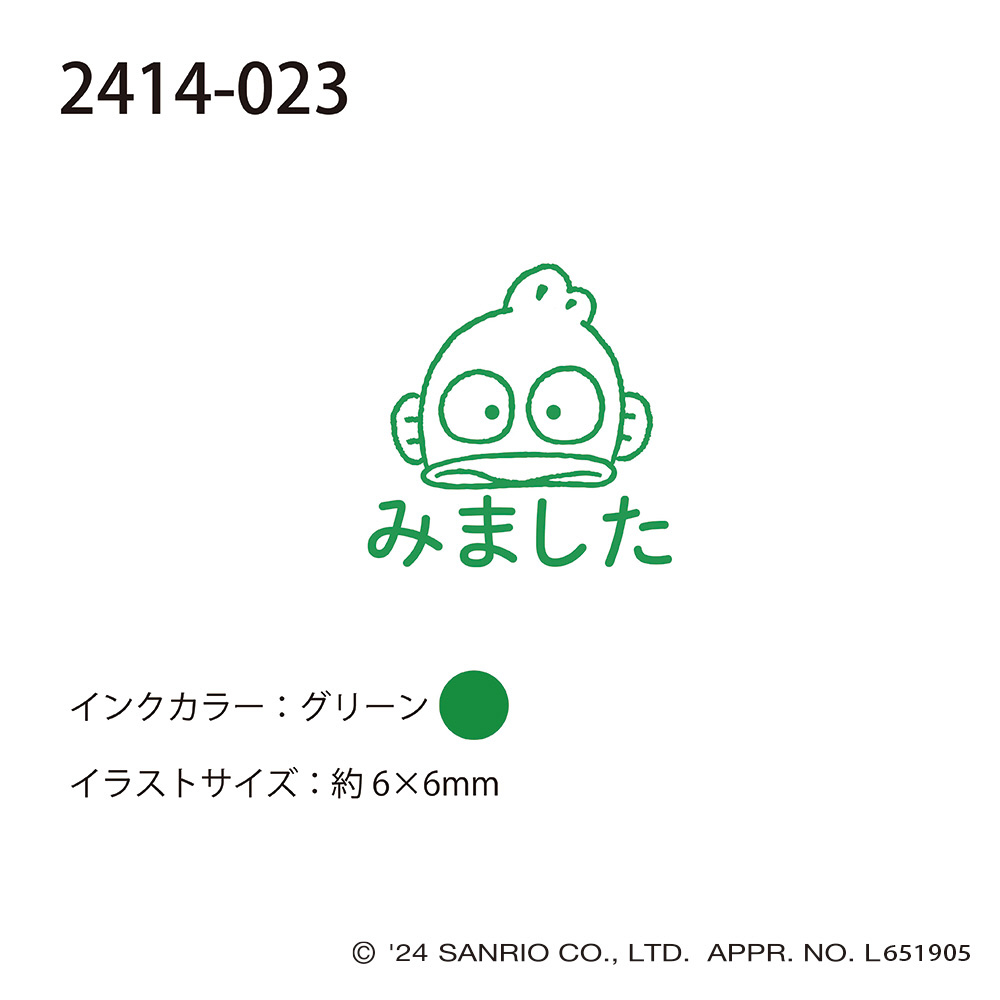 サンリオキャラクターズワンポイント浸透印 ハンギョドン  みました 2414-023