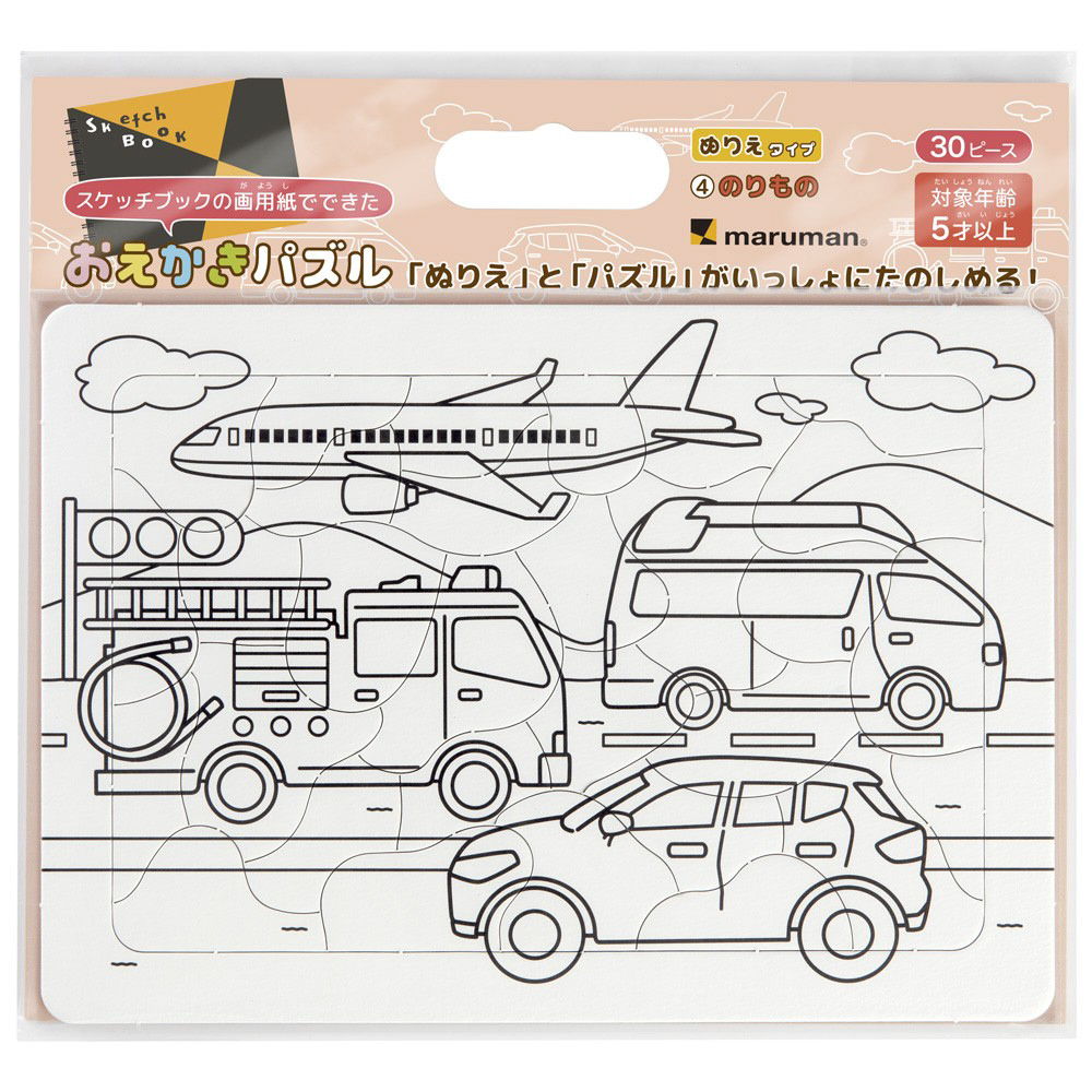 色鉛筆、水彩、クレヨン、マーカーと様々な描画材が使えるマルマンのオリジナル画用紙がパズルになって新登場。子供たちが大好きな「おえかき/ぬりえ」と「パズル」が合体した「おえかきパズル」です。おえかき後とぬりえ後にパズルで何度も楽しめて、屋内での遊びにピッタリ!B5サイズ、30ピース