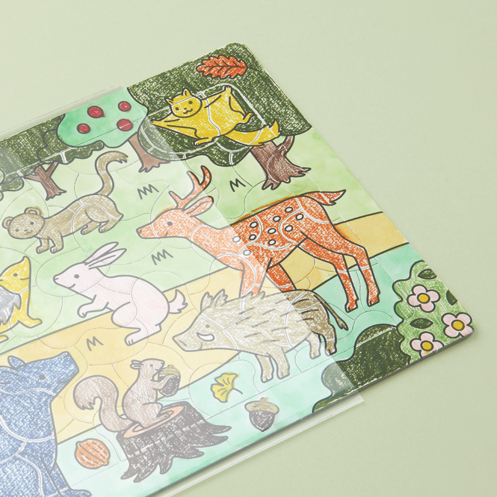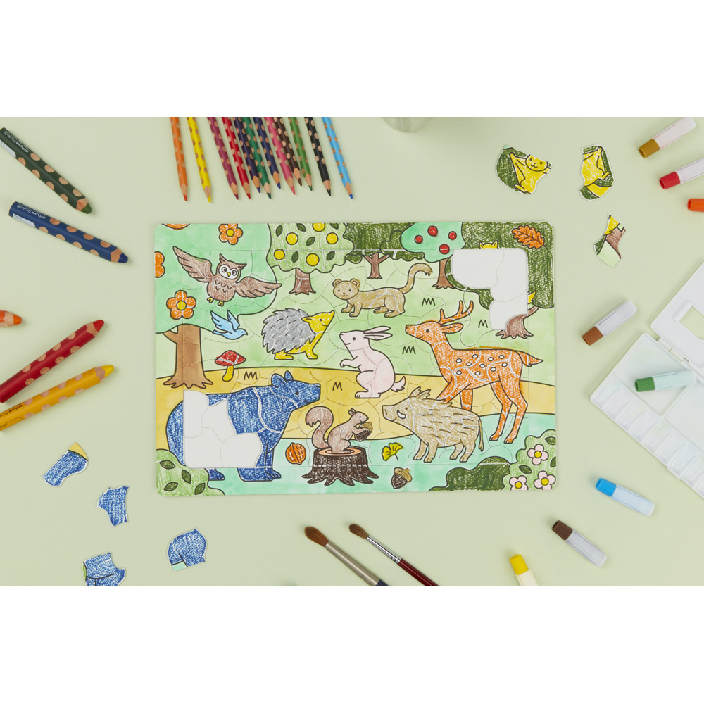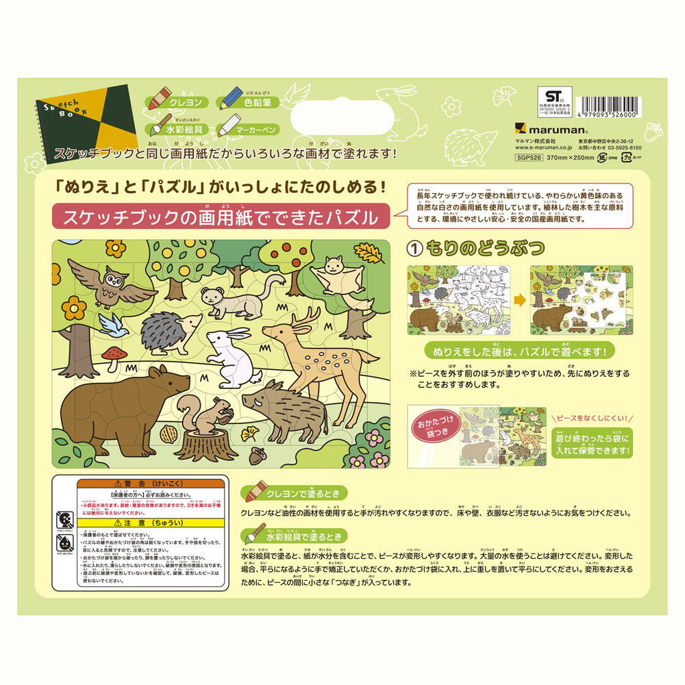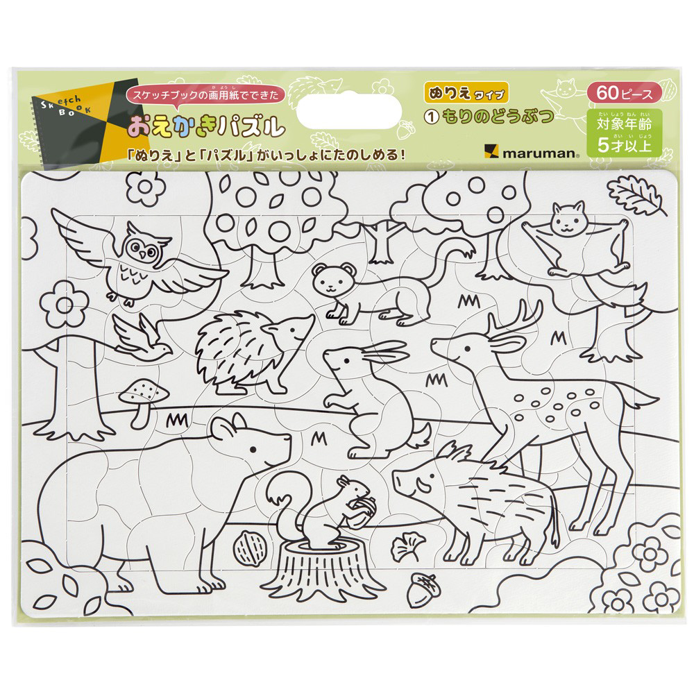 色鉛筆、水彩、クレヨン、マーカーと様々な描画材が使えるマルマンのオリジナル画用紙がパズルになって新登場。子供たちが大好きな「おえかき/ぬりえ」と「パズル」が合体した「おえかきパズル」です。おえかき後とぬりえ後にパズルで何度も楽しめて、屋内での遊びにピッタリ!B4サイズ、60ピース