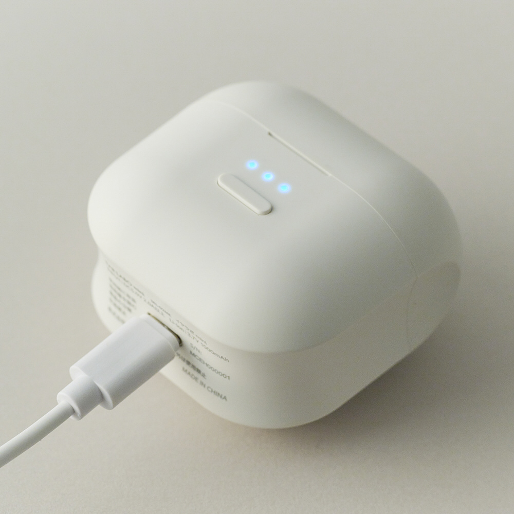 耳に心地よくフィットする耳せんとコンパクトな充電ケース。