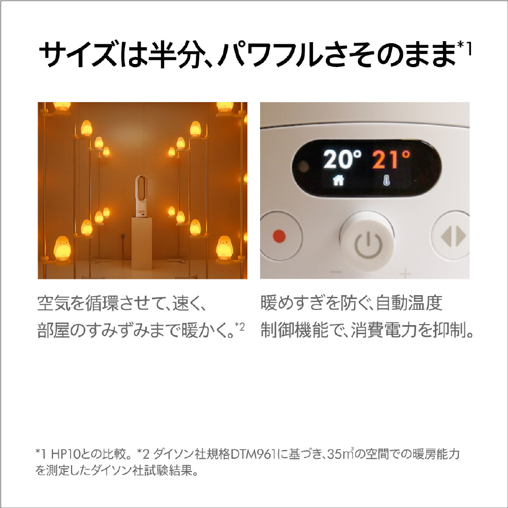 脱衣所やキッチンも暖かく。サイズは半分、パワフルさそのまま。*HP10との比較
