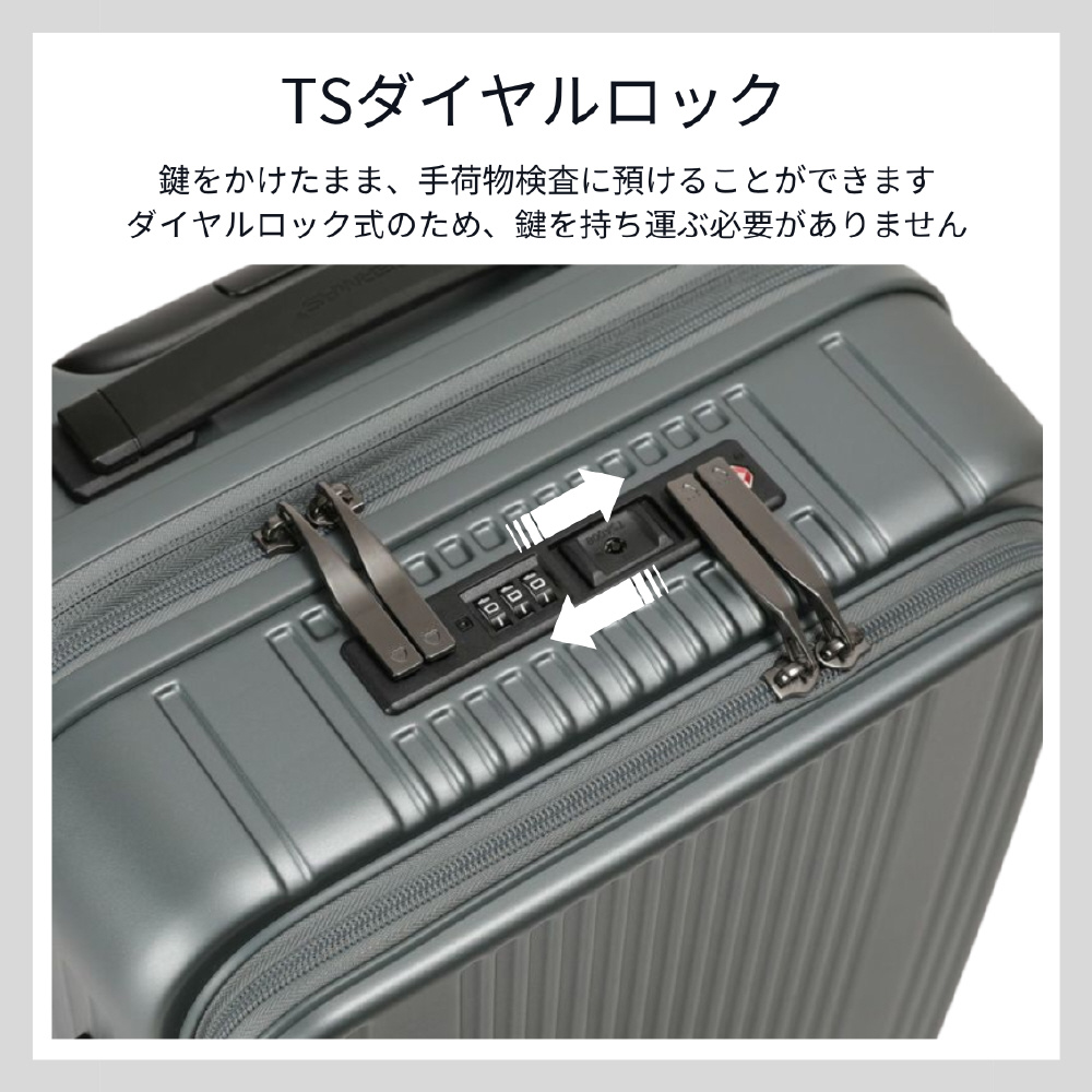 ■機能 TSAロック(ダイヤル式)、HINOMOTO製ストッパー付きキャスター、エキスパンダブル機能、PC収納対応フロントポケット