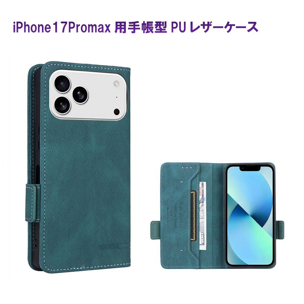 iPhone 17Promax 手帳型 PUレザーケース(グリーン)