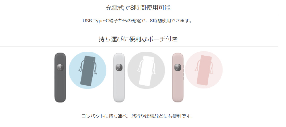■充電式で8時間使用可能