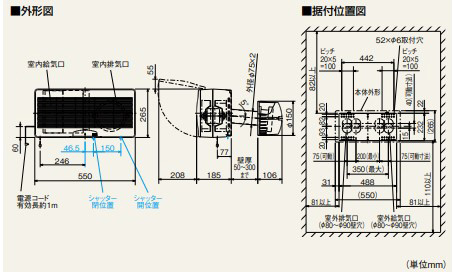 VL-100U3-AE-SN 壁掛形ロスナイ 壁掛2パイプ取付タイプ ※シャッターなし