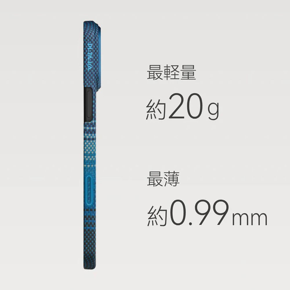 軍用素材としてももちいられる強靭な素材アラミドを編み込んだケースです。厚み1mmの極薄ケースは驚くほどスリムで軽量なのでiPhoneのサイズ感をそのままに感じながらご利用頂けます。MagSafe対応