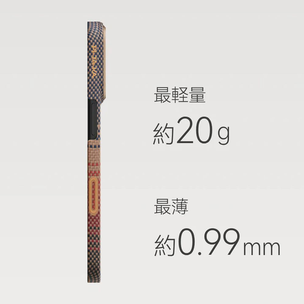 軍用素材としてももちいられる強靭な素材アラミドを編み込んだケースです。厚み1mmの極薄ケースは驚くほどスリムで軽量なのでiPhoneのサイズ感をそのままに感じながらご利用頂けます。MagSafe対応