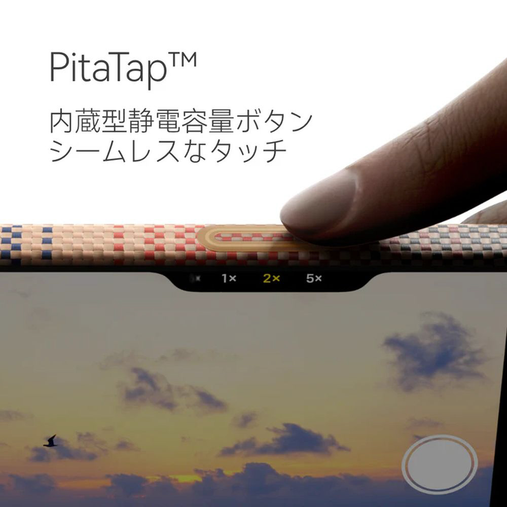 厚さ1mm未満のケースでカメラコントロールボタンをアラミド繊維で保護。内部に隠された静電容量層により、タップやスライドも滑らかに反応します。シームレスに一体化された設計で、アラミド繊維特有の質感を損なうことなく、正確で快適な操作性を実現。