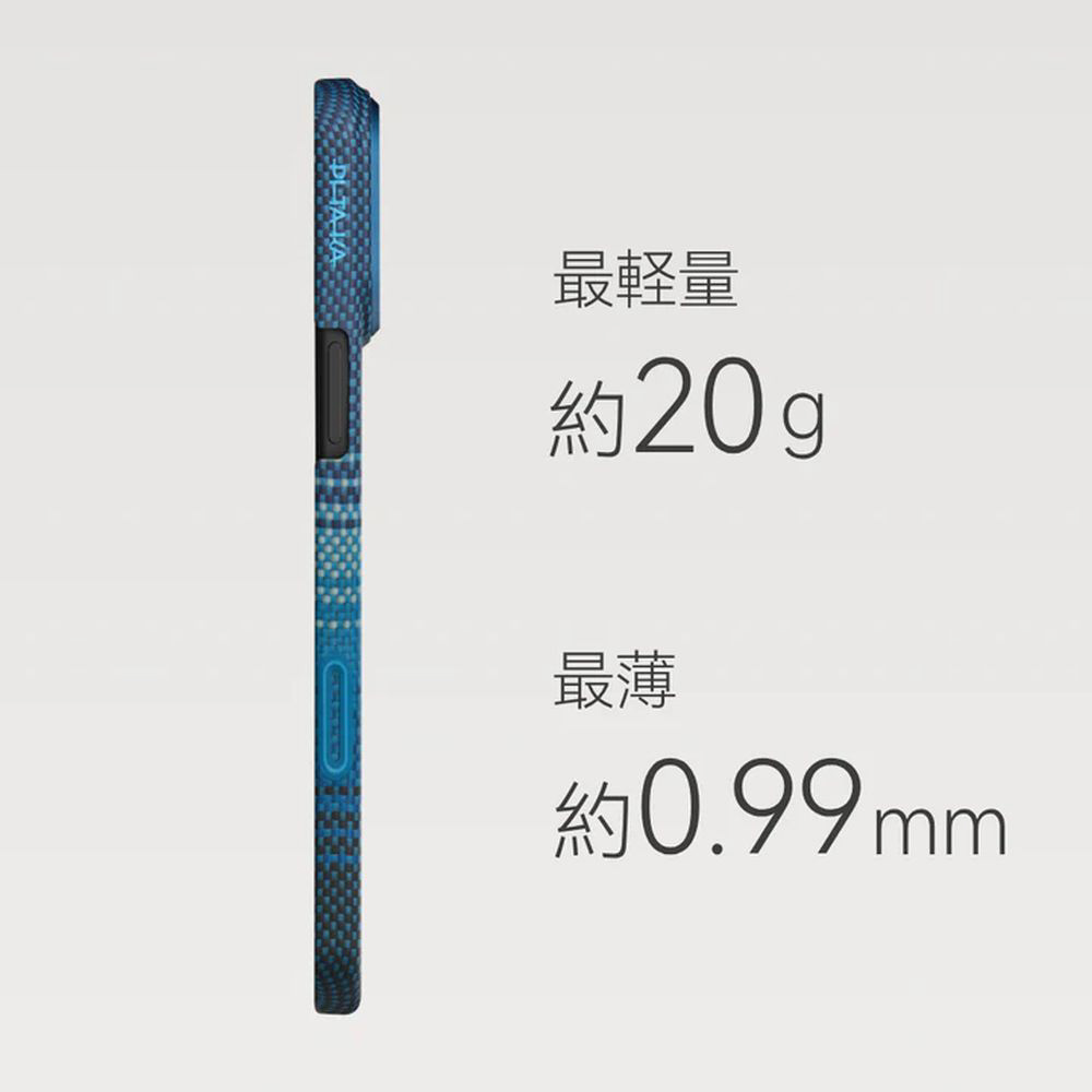 軍用素材としてももちいられる強靭な素材アラミドを編み込んだケースです。厚み1mmの極薄ケースは驚くほどスリムで軽量なのでiPhoneのサイズ感をそのままに感じながらご利用頂けます。MagSafe対応