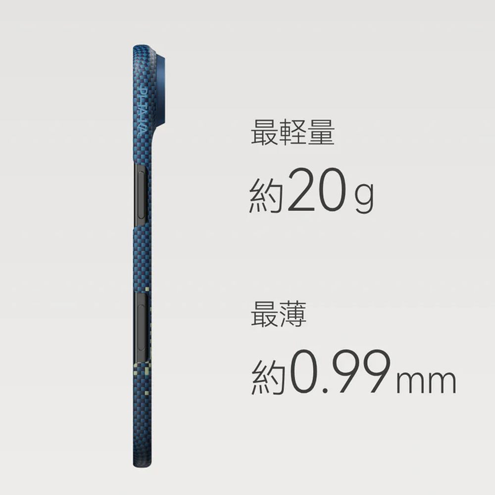軍用素材としてももちいられる強靭な素材アラミドを編み込んだケースです。厚み1mmの極薄ケースは驚くほどスリムで軽量なのでiPhoneのサイズ感をそのままに感じながらご利用頂けます。MagSafe対応