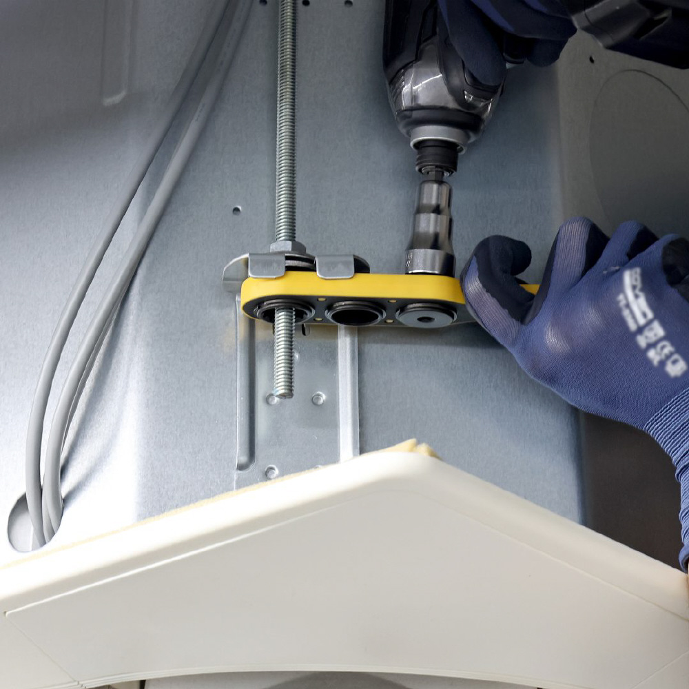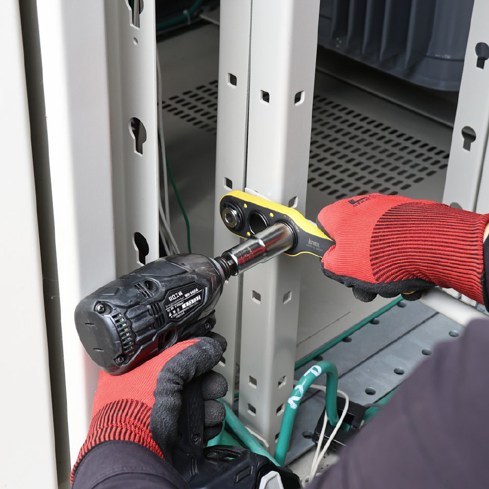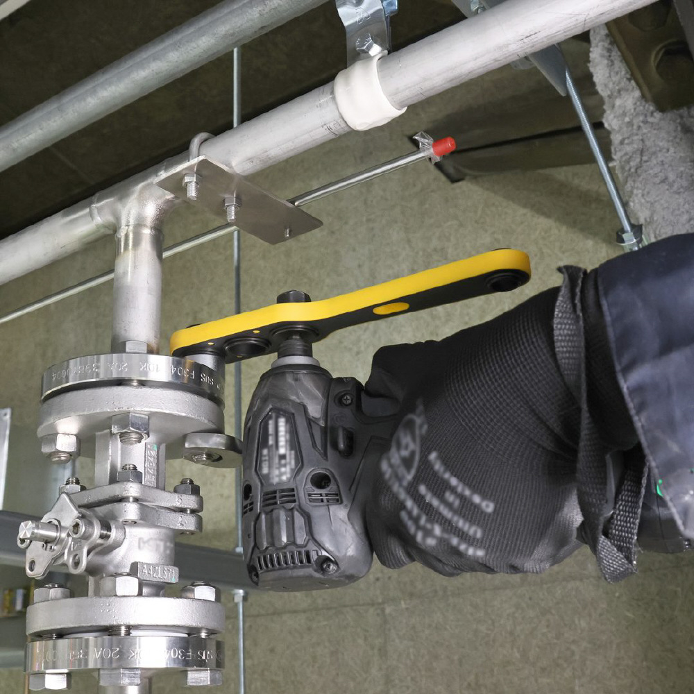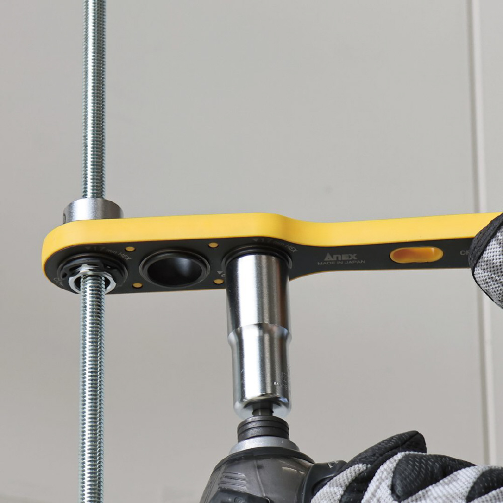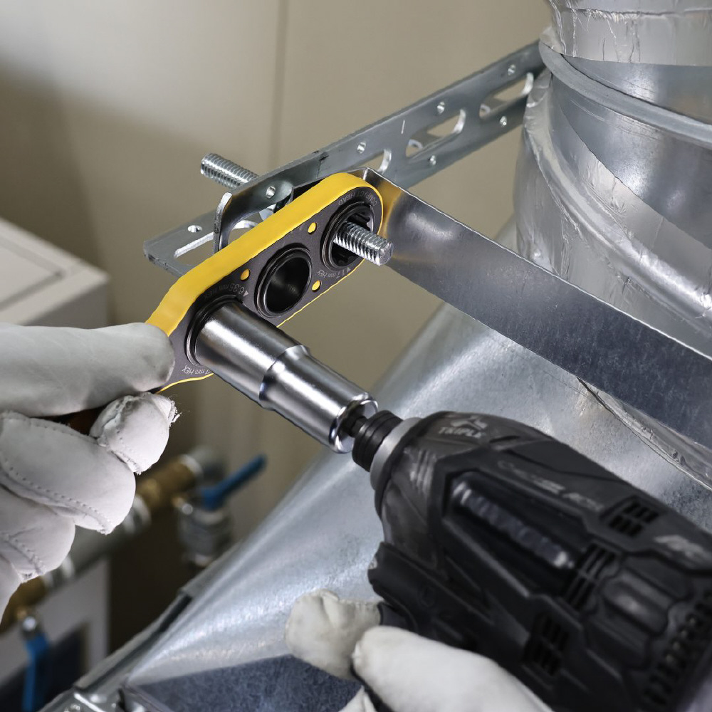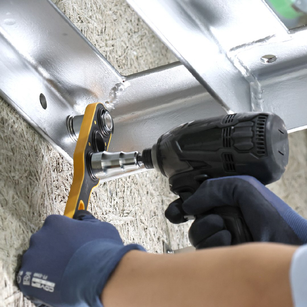 【用途】<BR>電気設備の架台、ダクトレール周りのボルトに<BR>製品特徴】<BR>●狭所のボルト・ナット回しの時短と省力を実現する電動ドライバー用アタッチメント工具です<BR>●H8〜H21のボルト・ナットに対応するソケットセットです<BR>●オフセットアダプター本体が抜け落ちず、片手で作業ができる止め輪付ビットを付属しています<BR>●持ち運びに便利な収納ケース付き<BR>●最大許容トルク230N・m