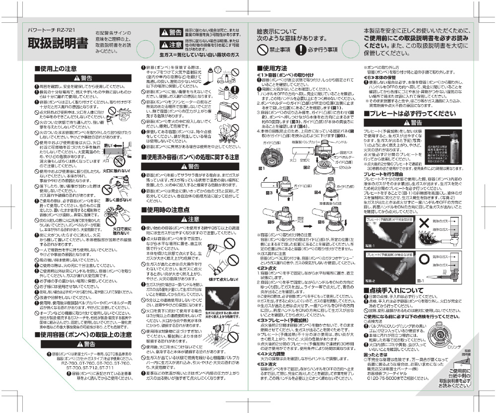 ・点火後2分間のプレヒート(予備加熱)を行うことで、連続約30秒間の逆さ使用が可能。