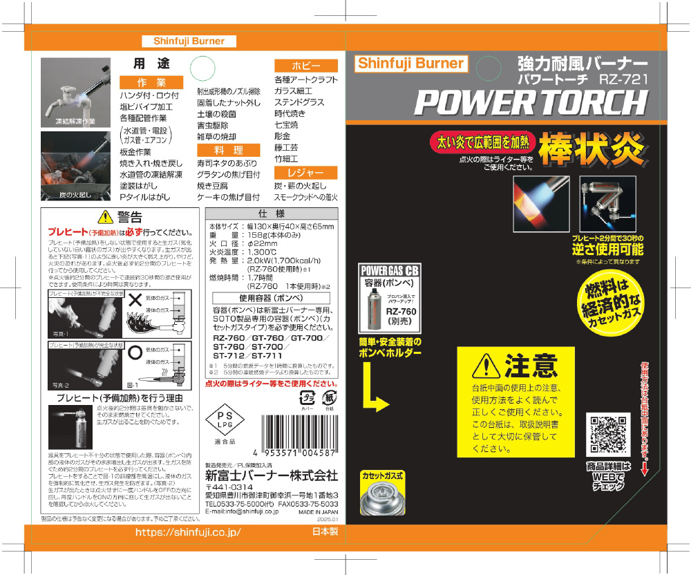 仕様1 【用途】料理、ホビー、レジャー、凍結解凍作業、時代焼き、塗装はがし、ロウ付